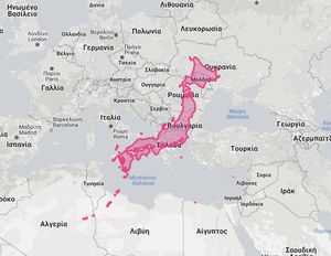 Η Ιαπωνία (ροζ) σε σύγκριση με την Ελλάδα (και την υπόλοιπη Ευρώπη).